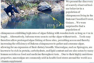 Boesch, C., et al. (2016), Chimpanzees routinely fish for algae with tools during the dry season in Bakoun, Guinea. American Journal of Primatology. doi:10.1002/ajp.22613